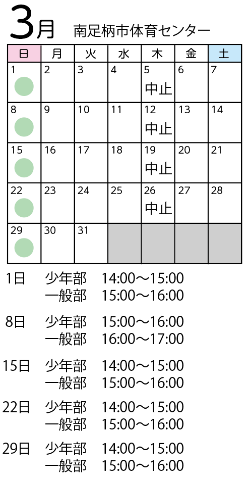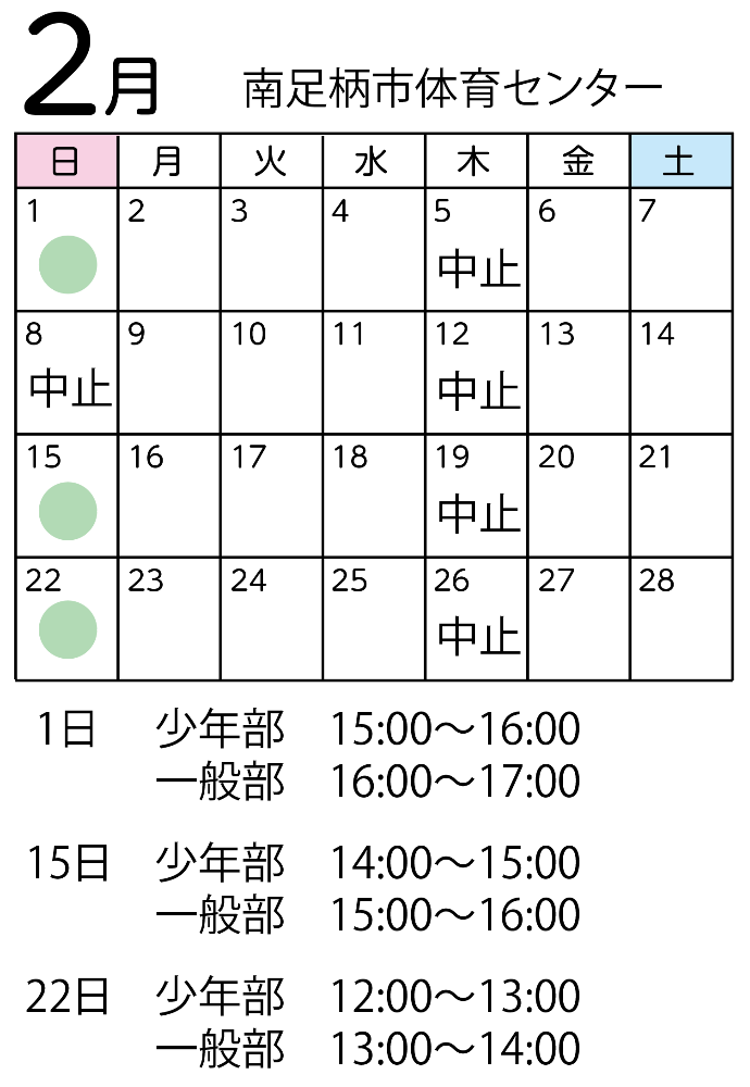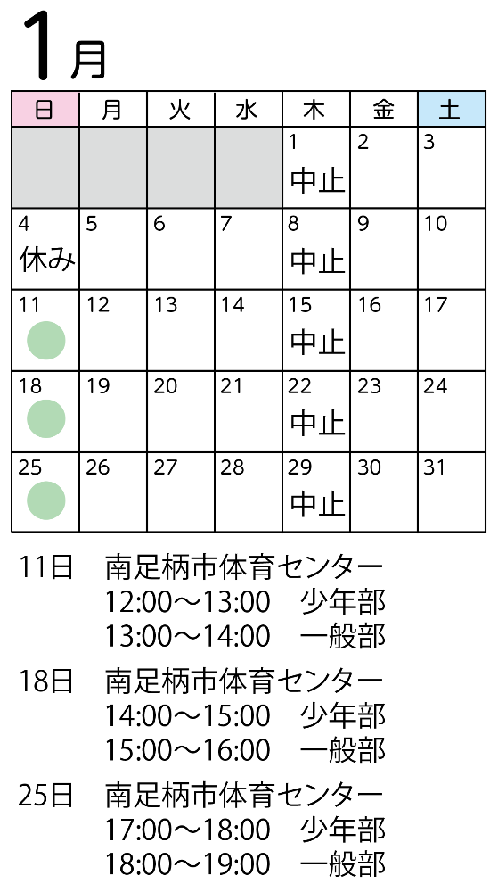 来年1月、2月、3月の日曜稽古は、大井町総合体育館が改修工事のため、南足柄市体育センターで稽古となります。
